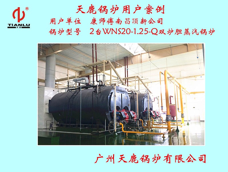 康師傅南唱頂新公司2臺(tái)WNS20-1.25-Q雙爐膽蒸汽鍋爐